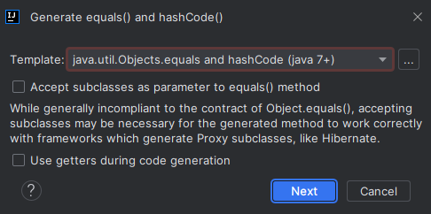 equals๋ฅผ ์ง์ ์์ฑํ ์๋ ์์ง๋ง equals ์์ฑ์ ๋์์ฃผ๋ ์ฌ๋ฌ๊ฐ์ง ๋ฐฉ๋ฒ๋ค์ด ์๋ค.