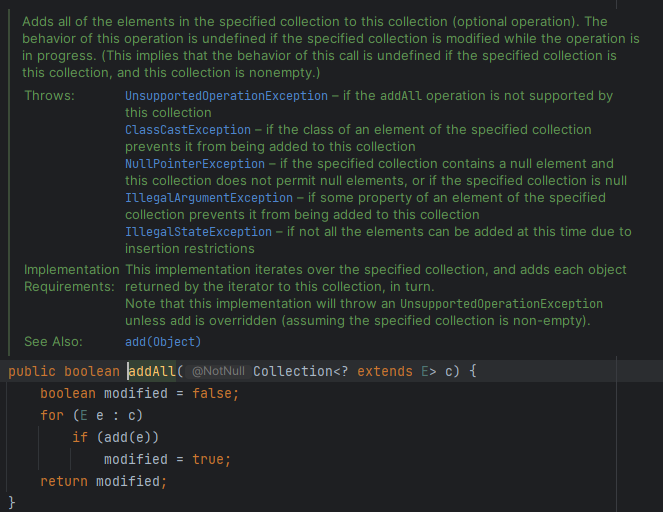 ์๋ํ๋ฉด HashSet์ addAll ๋ฉ์๋๊ฐ add ๋ฉ์๋๋ฅผ ์ฌ์ฉํด์ ๊ตฌํ๋์ด ์๊ธฐ ๋๋ฌธ์ด๋ค..!
