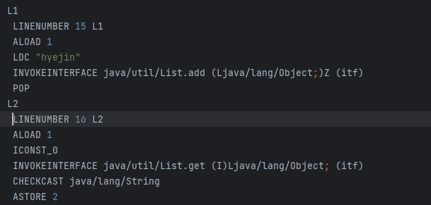byte code๋ก ํ์ธ์ ํด๋ณด๋ฉด (IntelliJ ์์๋ shift ๋๋ฒ ๋๋ฅด๊ณ show bytecode ํ๋ฉด ํ์ธํ ์ ์๋ค.)