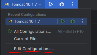 Edit Configuration ๋ฉ๋ด์ ๋ค์ด๊ฐ๋ฉด