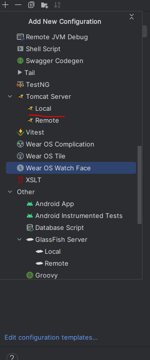 Tomcat Server -> Local์ ์ ํํด์ค๋ค.
