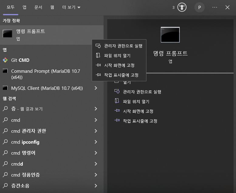 cmd ๋ฅผ ๊ด๋ฆฌ์ ๊ถํ์ผ๋ก ์คํํ๋ฉด ๋๋ค.