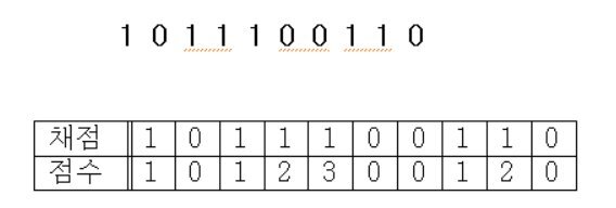 ๋จผ์ 1์ ๋ง๋๋ฉด score์ +1 ํด์ฃผ๊ณ , 0์ ๋ง๋๋ฉด ๋ค์ score์ 0์ผ๋ก ์ด๊ธฐํํด์ฃผ๋ฉด ๋๋ค.