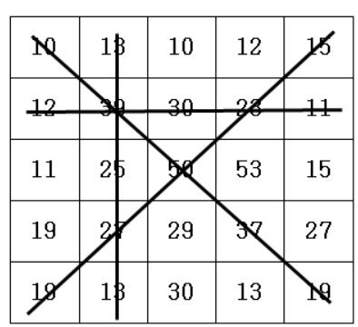 5*5 ๊ฒฉ์ํ์ ์๋๋กธ ๊ฐ์ด ์ซ์๊ฐ ์ ํ์์ต๋๋ค.