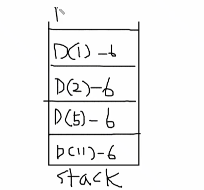 ๋งจ ์ฒ์์๋ DSF(11)์ ํธ์ถํ๊ธฐ ๋๋ฌธ์ ์คํ์ ๊ฐ์ฅ ๋จผ์ ์์ด๊ณ , ํจ์๊ฐ ๋๋๊ธฐ์ ์ ์๊ธฐ ์์ ์ ๋ค์ ํธ์ถํ๊ธฐ ๋๋ฌธ์ 6๋ผ์ธ๊น์ง๋ง ์ํํ๊ณ DFS(5)์ ํธ์ถํ๋ค.