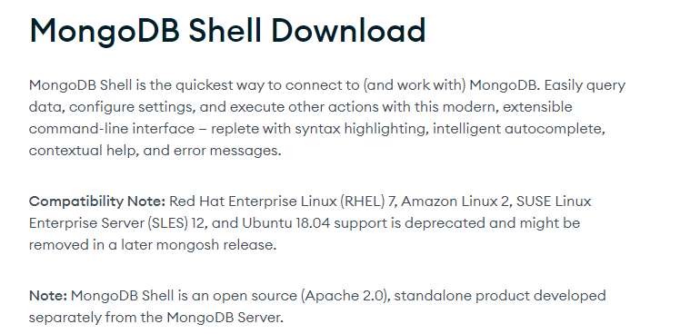 ๋ฐ๋ผ์ mongosh๋ฅผ ๋ฐ๋ก ๋ค์ด๋ฐ์์ ์ฌ์ฉํด์ผ ํ๋ค๊ณ ํ๋ค.