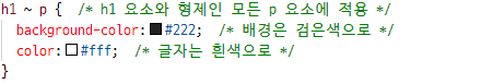νμ μ νμ sibling selector λ νμ μμμ μ€νμΌμ μ μνλλ° μΈμ νμ μ€νμΌκ³Ό λ¬λ¦¬ λͺ¨λ νμ μμμ μ μ©λλ€.