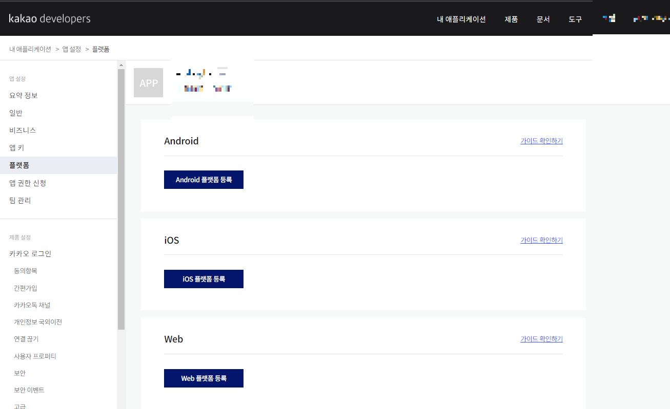 -> [ํ๋ซํผ] ํ์ด์ง์ Web ํ๋ซํผ ๋ฑ๋ก์ ํด๋ฆญํ๋ฉด