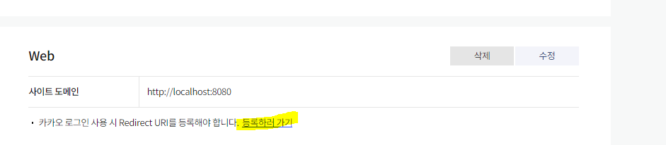 ๋๋ http://localhost:8080/login/kakao/code ๋ก ๋ฑ๋กํด์คฌ๋ค.