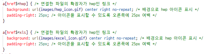 [href $= xls] μ²λΌ νμΌ μ΄λ¦μ λ§μ§λ§ μμ±κ°μ 체ν¬ν ν νμΌ νμ μ λ§λ μμ΄μ½μ νμΌ μ΄λ¦ μμ νμνλ€.