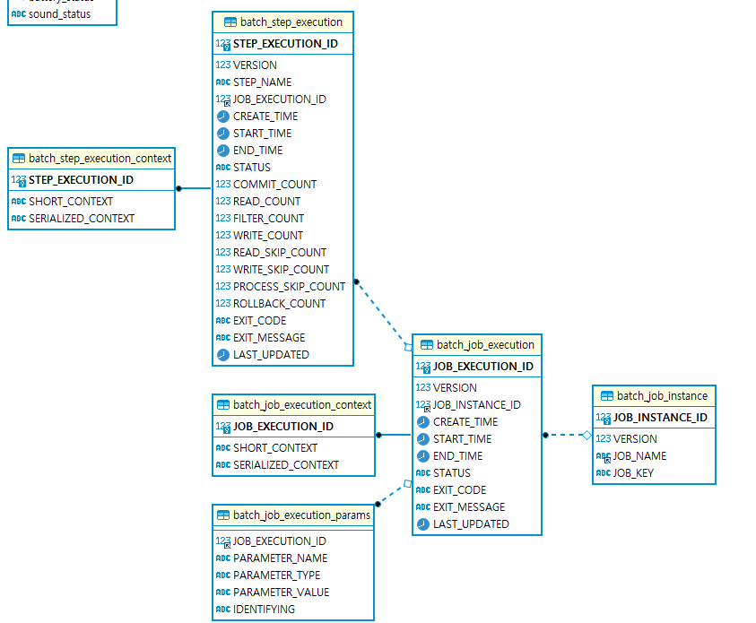 | BATCH_STEP_EXECUTION_CONTEXT | StepExecution ์ค ์์ฑ๋ ExecutionContext์ ๋ํ ์ ๋ณด๋ฅผ ์ ์ฅ. |