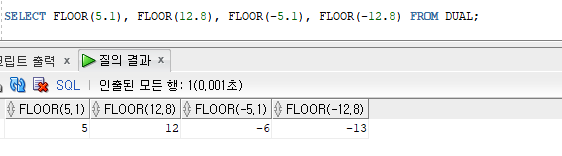 FLOOR() ํจ์๋ '์์น'์ ๋ด๋ฆผ๊ฐ์ ๊ตฌํ๋ ๊ธฐ๋ฅ์ด๋ค.