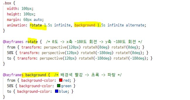 μ΄λ μ λλ©μ΄μ μ μ¬λ¬κ° μ§μ ν λλ₯Ό λλΉνμ¬ animation-name μμ±μΌλ‘ μ΄λ€ μ λλ©μ΄μ μ μ¬μ©ν μ§ μ΄λ¦μΌλ‘ ꡬλΆνλ€.