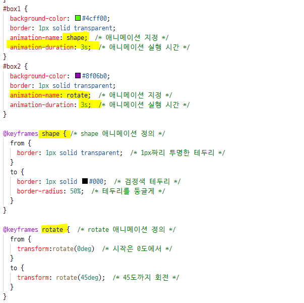 1οΈβ£ @keyframs μμ±, animation-name μμ±