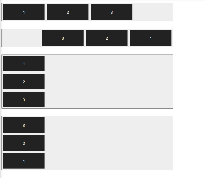 row-reverse : 주축을 가로로 지정하고 반대로 오른쪽에서 왼쪽으로 배치한다.