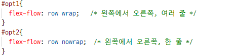 flex-flow 속성은 flex-direction 속성과 flex-wrap 속성을 한꺼번에 지정하여 플렉스 항목의 배치 방향을 결정하거나 줄을 바뀐다.