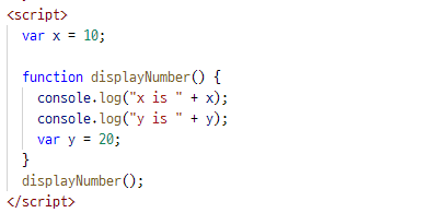 μ΄ ν¨μμ μ€ν κ²°κ³Όλ x is 10 κ³Ό y is undefined μ΄λ€.
