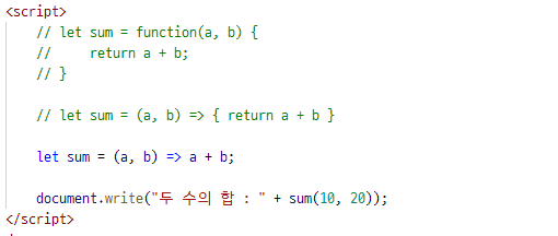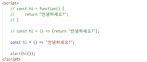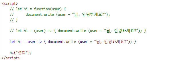 (๋งค๊ฐ๋ณ์) => { ํจ์ ๋ด์ฉ }