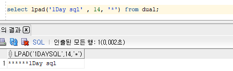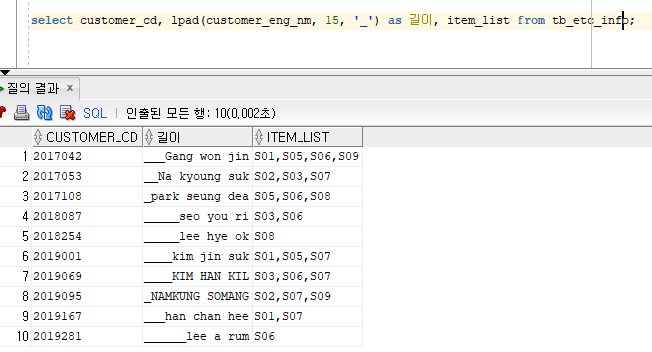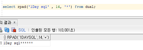 LPAD() ๋ ์ผ์ ํฌ๊ธฐ์ ์ค๋ฅธ์ชฝ ์ ๋ ฌํ ๋ฌธ์์ด์ ๋ง๋๋ ํจ์์ด๋ค.