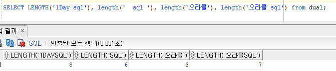 LENGTH(), LENGTHB() ํจ์๋ ๋ฌธ์์ด์ ๊ธธ์ด๋ฅผ ๊ตฌํ๋ ํจ์์ด๋ค.