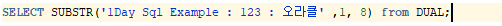 ์ด๋ SUBSTR()์ ํ๊ธ์ 1์๋ฆฌ๋ก , SUBSTRB()๋ ํ๊ธ์ 2์๋ฆฌ๋ก ์ธ์ํ๋ค.
