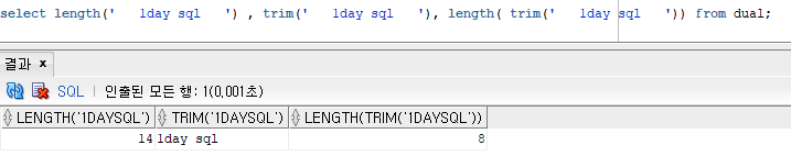 TRIM()ํจ์๋ ๋ฌธ์์ด์ ์์ชฝ ๊ณต๋ฐฑ์ ์ ๊ฑฐํ๋ ํจ์์ด๋ค.