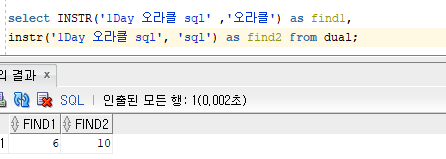 INSTR(), INSTRB() ํจ์๋ ๋ฌธ์์ด์์ ์ฐพ์ ๋ฌธ์์ด์ ์์น๋ฅผ ๊ตฌํ๋ ํจ์์ด๋ค.
