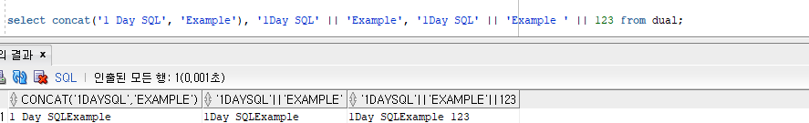 CONCAT() ํจ์๋ ๊ฐ์ ์ฐ๊ฒฐํด์ฃผ๋ ๊ธฐ๋ฅ์ ํ๋ ํจ์์ด๋ค.