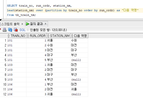 LEAD(νλλͺ ) OVER (PARTITION BY κ·Έλ£Ήνλλͺ ORDER BY μ λ ¬νλλͺ )