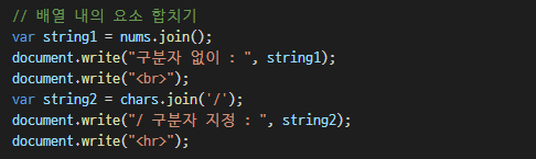 join : ๋ฐฐ์ด ์์๋ฅผ ๋ฌธ์์ด๋ก ํฉ์น๋ค. (๊ตฌ๋ถ์ ์ง์ ๊ฐ๋ฅ)