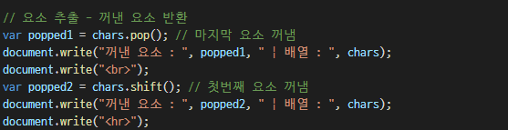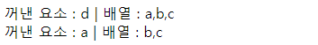 pop : ๋ฐฐ์ด์ ๋ง์ง๋ง ์์๋ฅผ ๊บผ๋ด ๊ทธ ๊ฐ์ ๊ฒฐ๊ณผ๋ก ๋ฐํํ๋ค.
