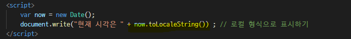 toLocaleString() : ํ์ฌ ๋ ์ง์ ์๊ฐ์ ํ์ง ์๊ฐ์ผ๋ก ํ์ํ๋ค.