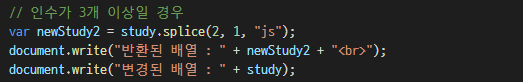 splice : ๋ฐฐ์ด์ ์์๋ฅผ ์ถ๊ฐํ๊ฑฐ๋ ์ญ์ ํ๋ค.