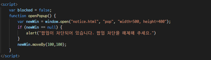 window.open() ๋ฉ์๋๋ ์ฃผ๋ก ํํ์ด์ง ํ์ ์ ๋์ธ๋ ์ฌ์ฉํ๋ค๊ณ ํ๋ค.