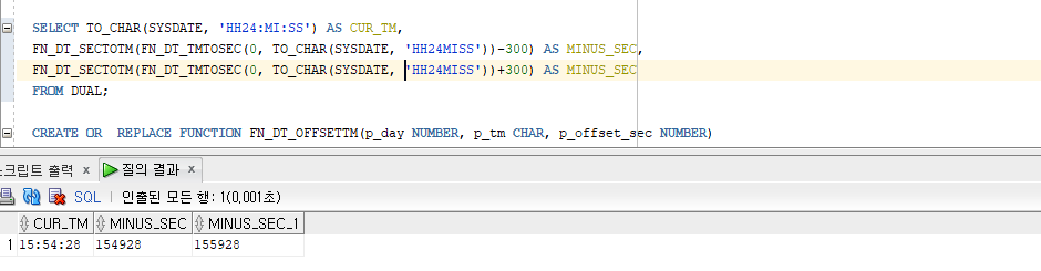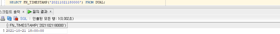 FN_DT_TMTOSEC ν¨μ μ¬μ© κ²°κ³Ό