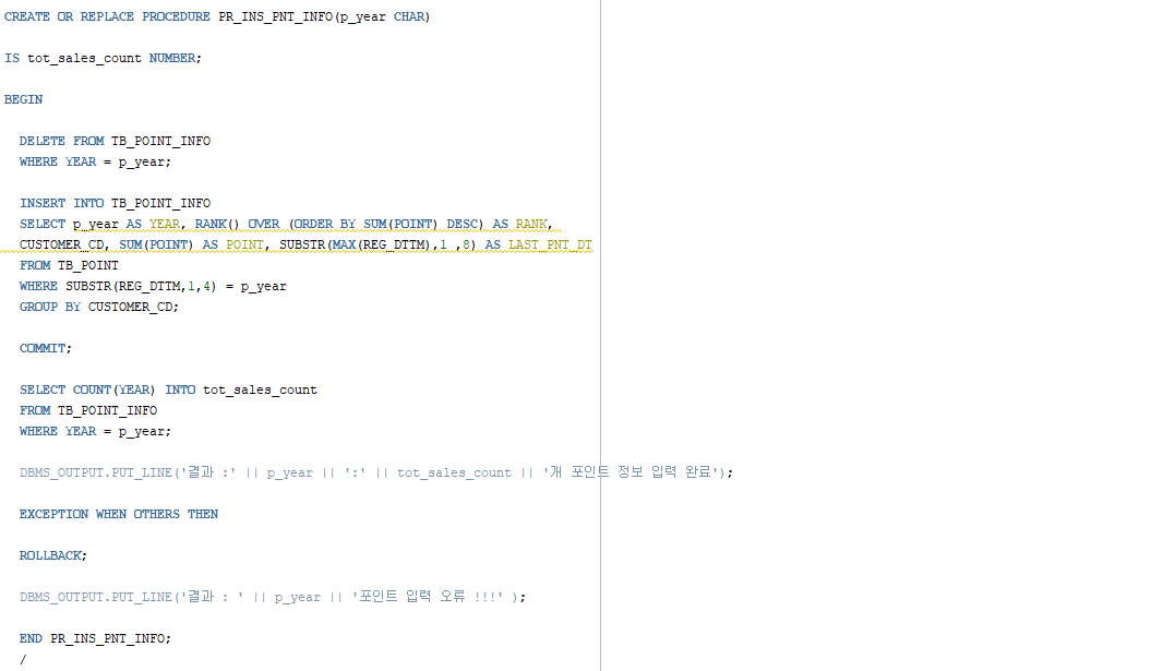 EXEC PR_INS_PNT_INFO('2018'); νλ‘μμ μ 2018 λ§€κ°λ³μ μ λ ₯ν μ€ν