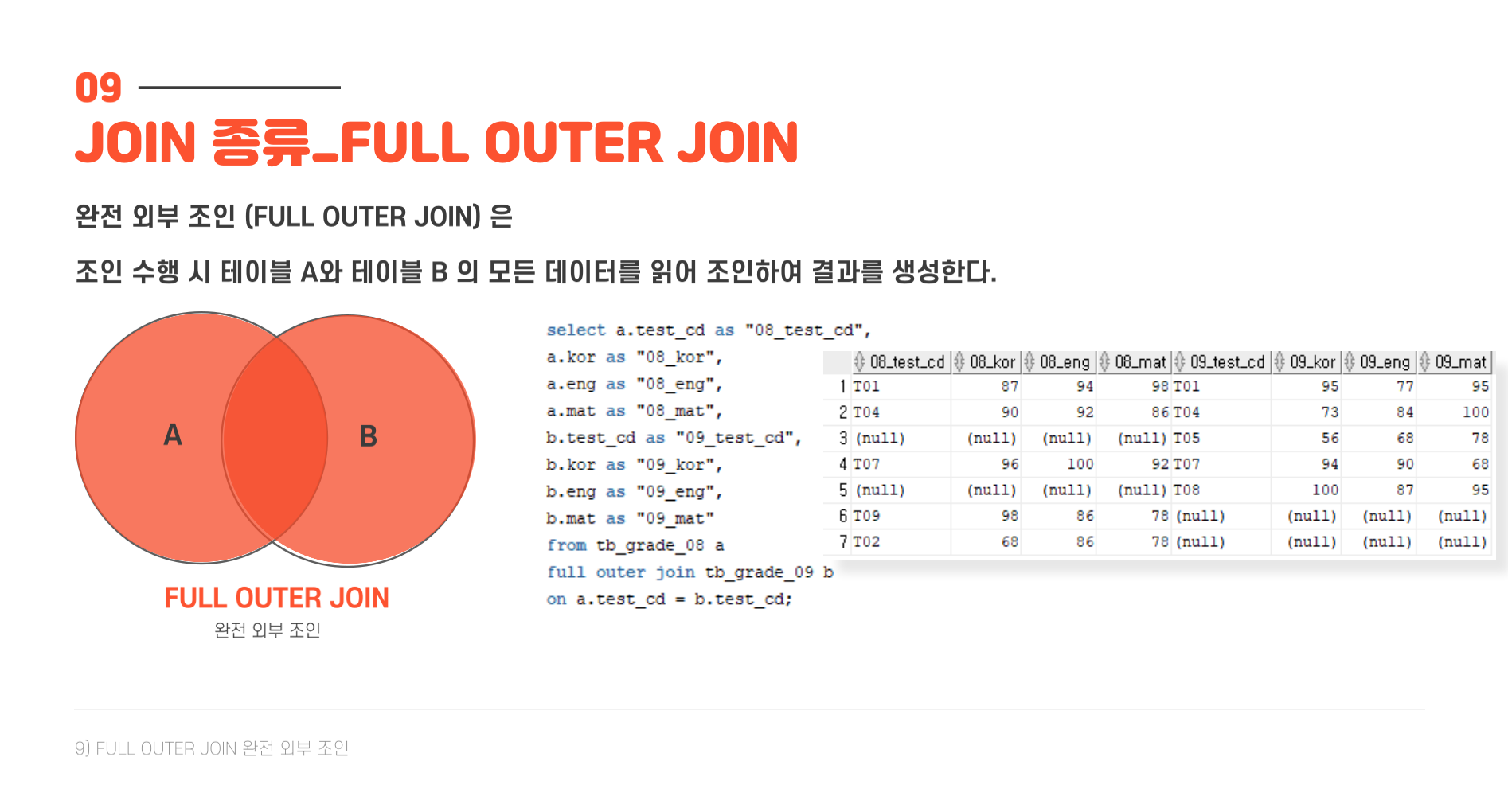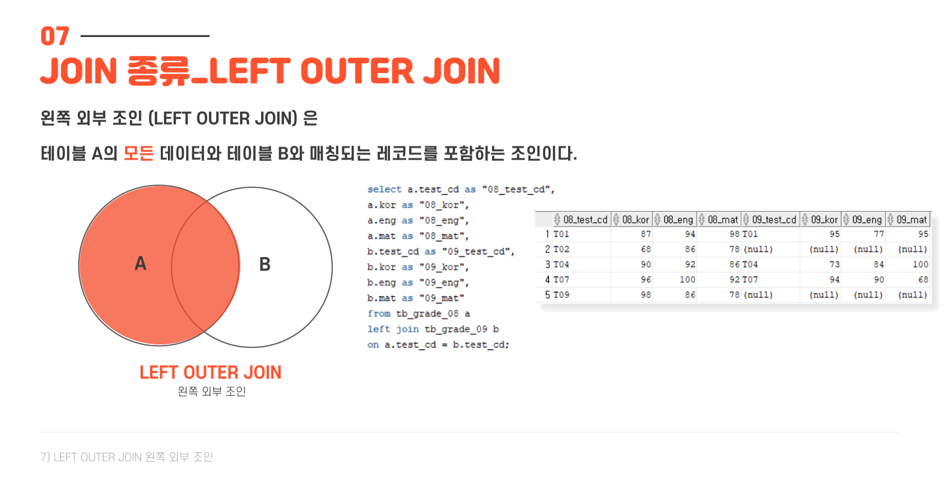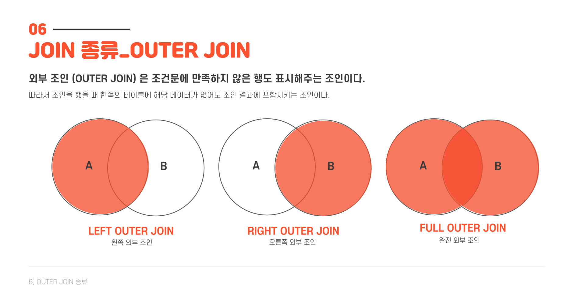 ๋ฐ๋ผ์ ์กฐ์ธ์ ํ์ ๋ ํ์ชฝ ํ ์ด๋ธ์ ํด๋น ๋ฐ์ดํฐ๊ฐ ์๋ค๊ณ ํด๋ ์กฐ์ธ ๊ฒฐ๊ณผ์ ํฌํจ์ํค๋ ์กฐ์ธ์ด๋ค.