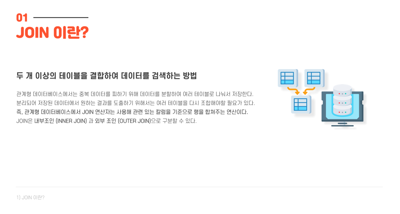 ๊ทธ๋ด๋ ๊ด๊ณํ ๋ฐ์ดํฐ๋ฒ ์ด์ค JOIN ์ฐ์ฐ์๋ฅผ ์ฌ์ฉํ๋ค.