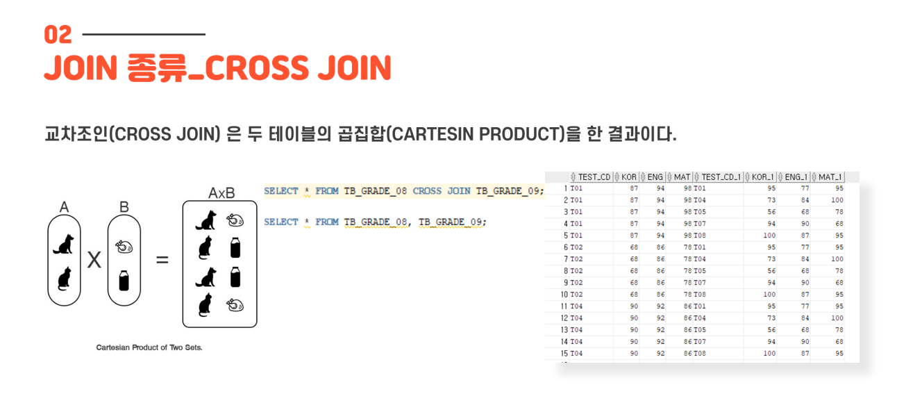 CROSS JOIN์ ๋ ํ ์ด๋ธ์ ๊ทธ๋ฅ ๊ณฑํ๊ฑฐ๋ผ๊ณ ์๊ฐํ๋ฉด ๋๋ค.