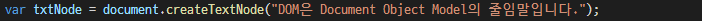 2๏ธโฃ ํ ์คํธ ๋ ธ๋ ๋ง๋ค๊ธฐ - createTextNode() ๋ฉ์๋