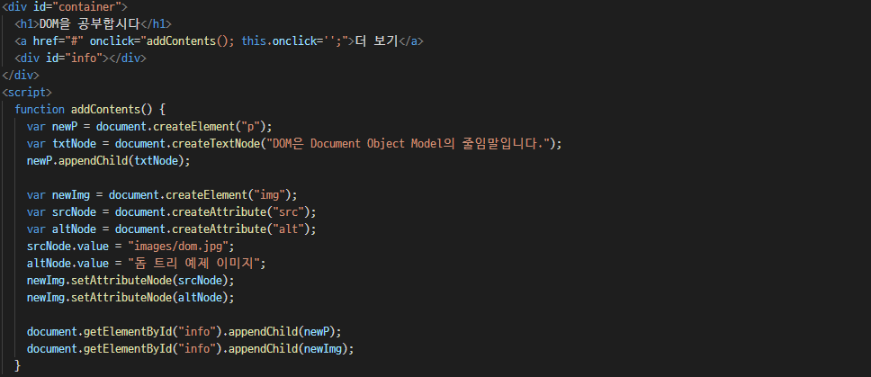 ์๋ฅผ ๋ค์ด img ๋ ธ๋๋ฅผ ์ถ๊ฐํ๋ค๊ณ ์๊ฐํ๋ฉด ๊ทธ ๋ ธ๋์ ์์ฑ์ ํด๋นํ๋ src์ alt๋ ธ๋๋ ์ถ๊ฐํด์ค์ผํ๋ค.