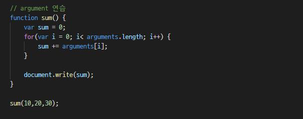 ν¨μ μ μλ¬Έμμλ κ·Έ κ°μ argumentsλΌλ λ³μμ μ μ₯νλ€.