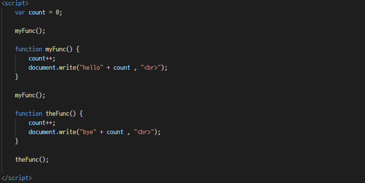μμμ 보면 myFunc() ν¨μλ₯Ό μ μΈνκΈ°λ μ μ μ΄ ν¨μλ₯Ό μ€νν κ²μ λ³Ό μ μλ€.