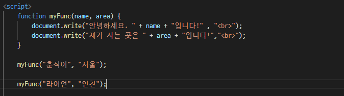 document.write(id + "λ νμν©λλ€!");