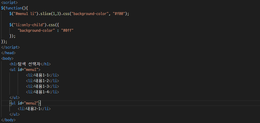 $("μμ μ ν").slice(start index, last index) ex) slice(1,3) 1μ΄κ³Ό 3μ΄ν
