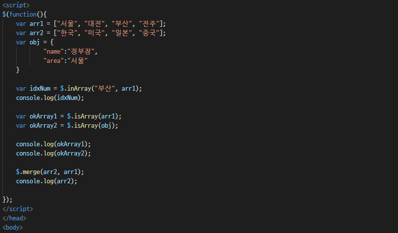 3οΈβ£ $.inArray()/ $.isArray() / $.merge() λ©μλ