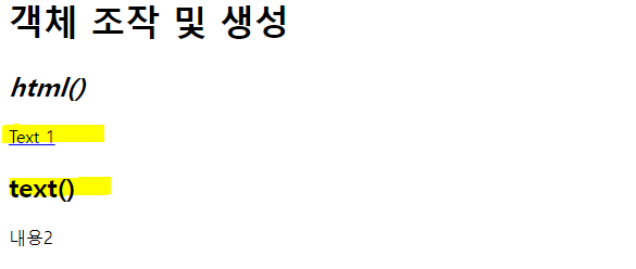 text() λ©μλλ μ νν μμμ ν¬ν¨λμ΄ μλ μ 체 ν μ€νΈλ₯Ό κ°μ Έμ€κ±°λ μ νν νμ μμλ₯Ό μ λΆ μ κ±°νκ³ μ ν μ€νΈλ₯Ό μμ±ν λ μ¬μ©νλ€.