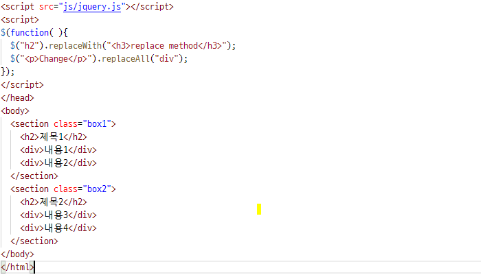 replaceAll() λ©μλμ replaceWith() λ©μλλ μ νν μμλ₯Ό μ μμλ‘ λ°κΏ λ μ¬μ©νλ€.