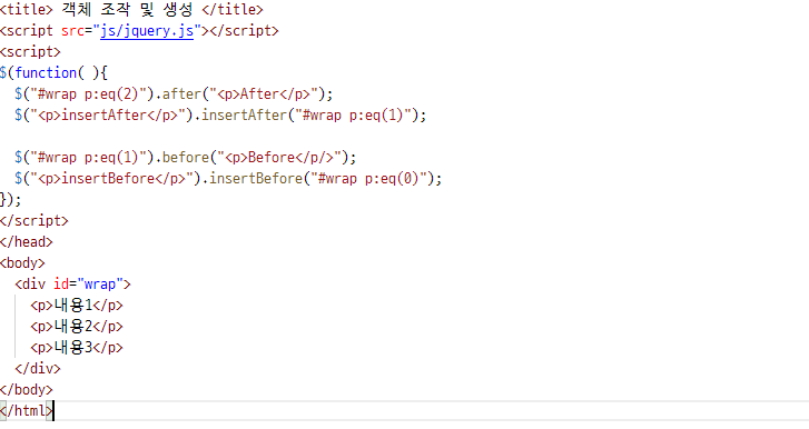 after()μ insertAfter()λ©μλλ μ νν μμμ λ€μ μμΉμ μ μμλ₯Ό μμ±νλ€.