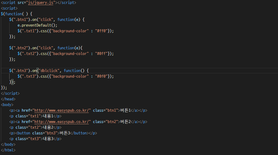 $("์ด๋ฒคํธ ๋์ ์ ํ").on("dblclick", function() {์๋ฐ์คํฌ๋ฆฝํธ ์ฝ๋;});